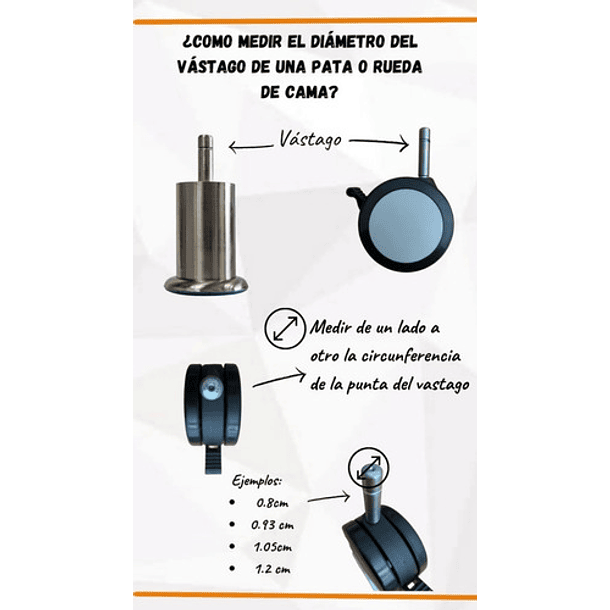 Diámetro vástago (perno que se inserta en la cama): 1.2 cm